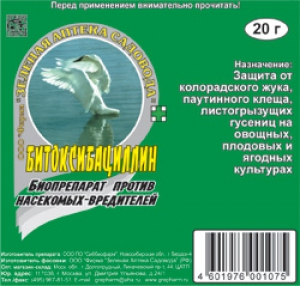 Битоксибациллин - микробиологический инсектицид для борьбы с личинками колорадского жука, паутинными клещами, гусеницами совок, белянок, молей, пядениц, листоверток и др. на овощных, плодово-ягодных и декоративных культурах. Препарат безопасен для человека, домашних животных, окружающей среды. Этот препарат можно применять в любую фазу развития растения, даже за 1-5 дней до сбора урожая.